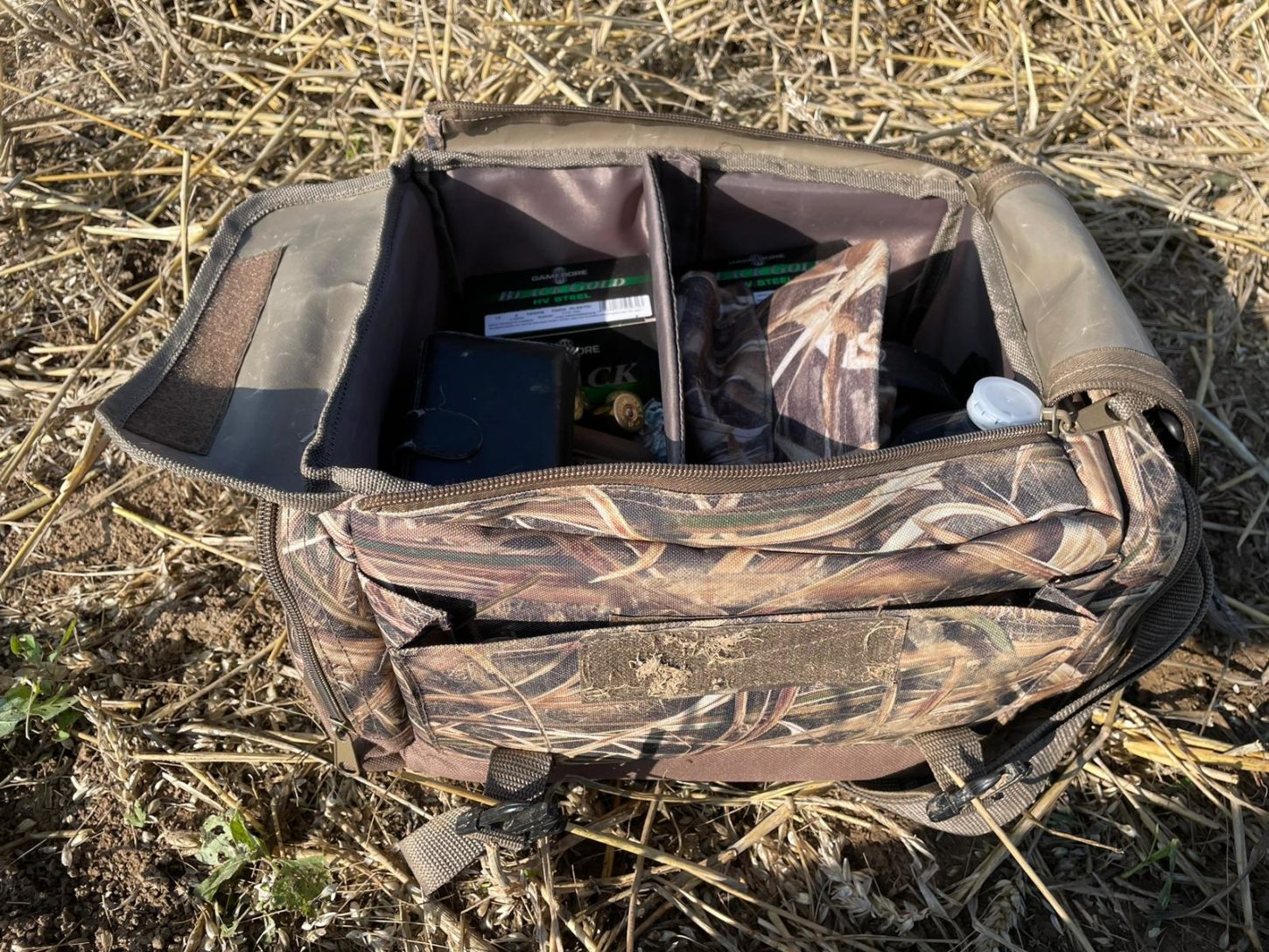 meerdere vakken voor het makkelijk opbergen van bijvoorbeeld een lokfluit, ganzendrager, of elektronische MP3 lokker.